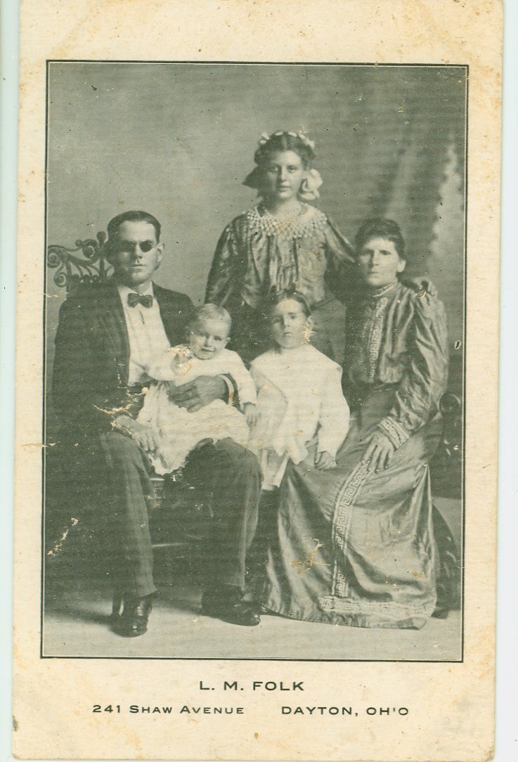 - Brown cloth over boards, partial title gold-stamped on spine and front cover. Includes a tipped-in leaf embossed with a scripture quotation in Kneass type. A card, that was inserted loose in the book, shows a photo of the L. M. Folk family on the front and a child's message on the reverse requesting a donation for the blind father. .1 - book .2 - card