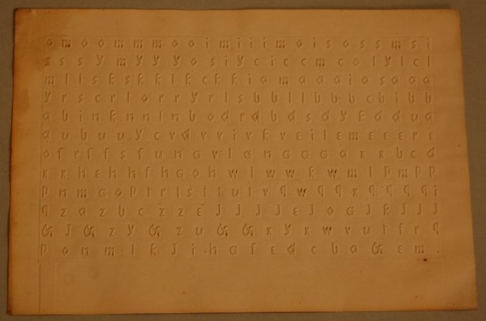 - Six alphabet cards embossed in Boston line letter.