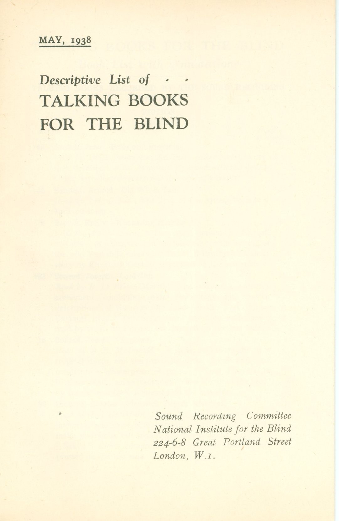 - Sound Recording Committee, National Institute for the Blind