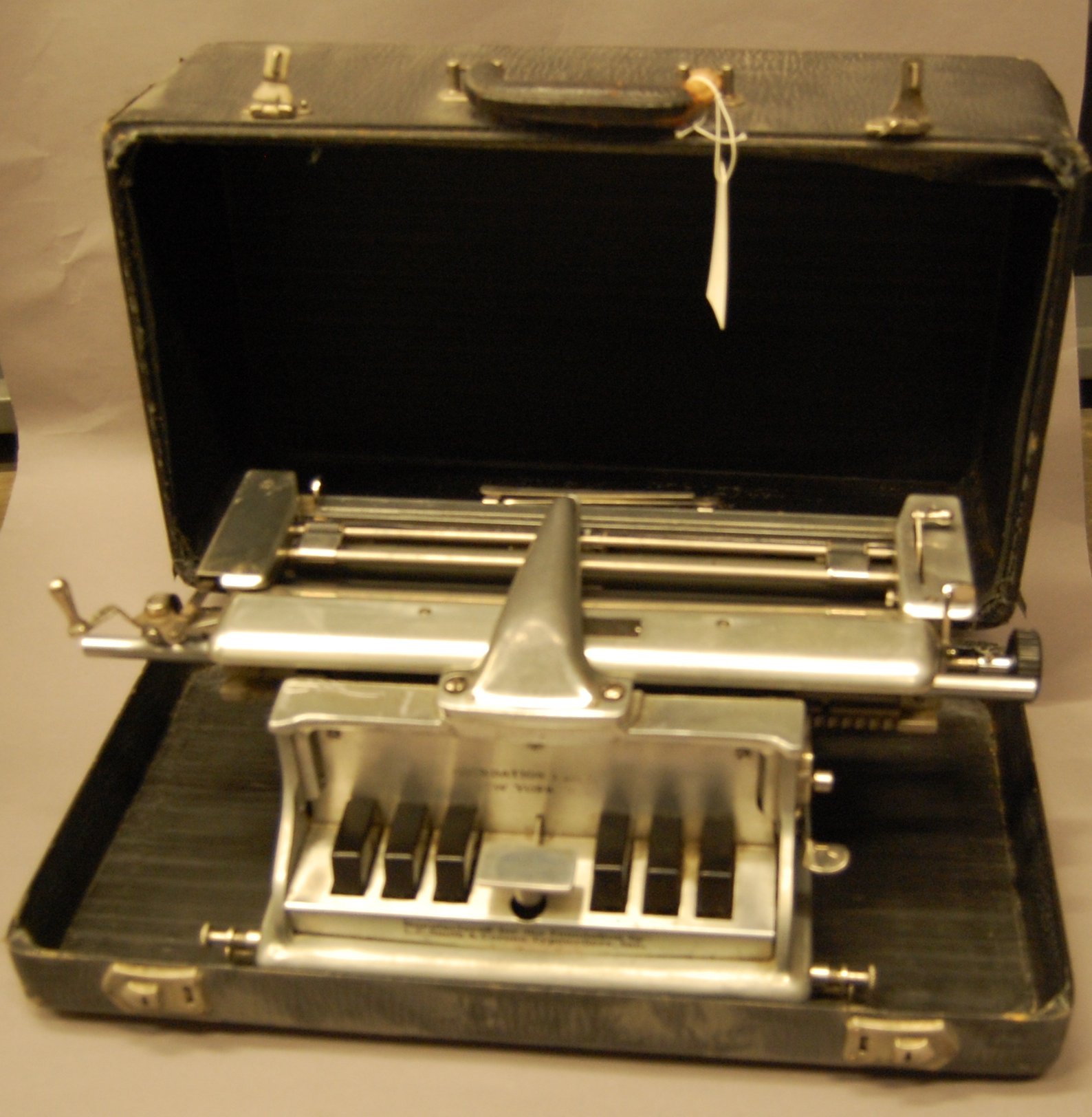 - Braille typewriter is of cast aluminum alloy, highly polished on the outside and lacquered. Black type stenciled on the front reads "American Foundation for the Blind Inc. New York, N.Y." The machine was manufactured for the Foundation by L.C. Smith & Corona Typewriters, Inc. Serial no. 4-1868.