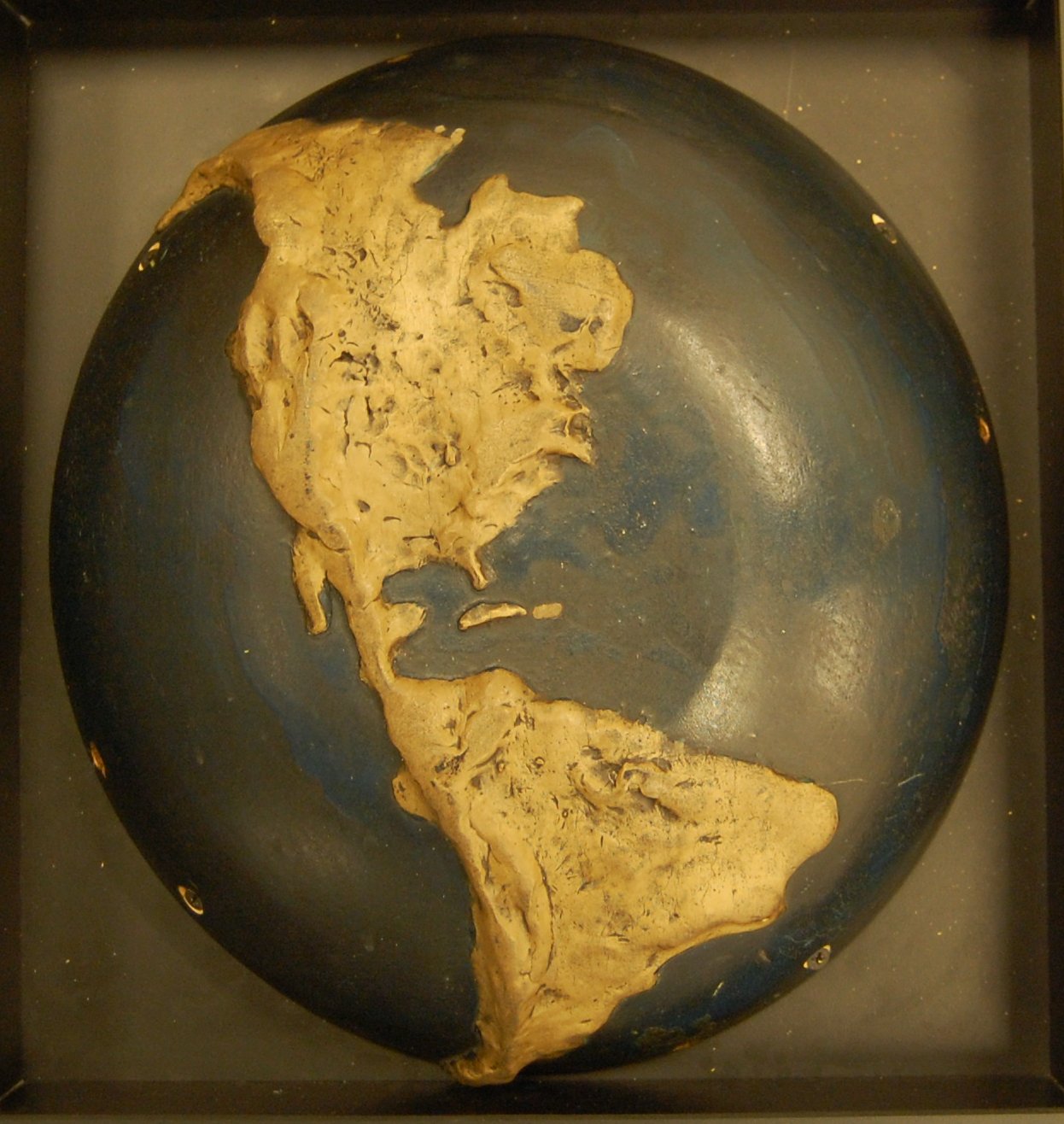 - The continents are made of a putty-like substance, permanently attached to the base. The bowl is painted blue.