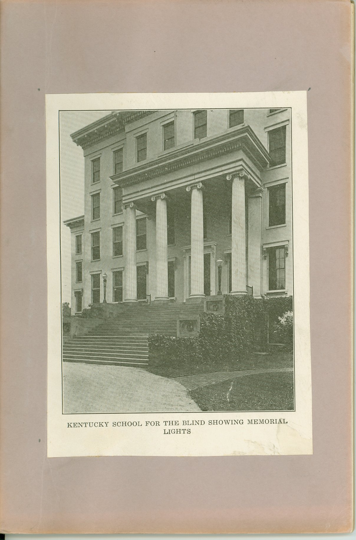 - Two copies of a paperbound booklet containing text pages 35-36 from the 1926 annual report of the Kentucky School for the Blind, along with several photo illustrations that appeared in some of the school's annual reports. On the front cover is a photo captioned: "Kentucky School for the Blind Showing Memorial Lights."