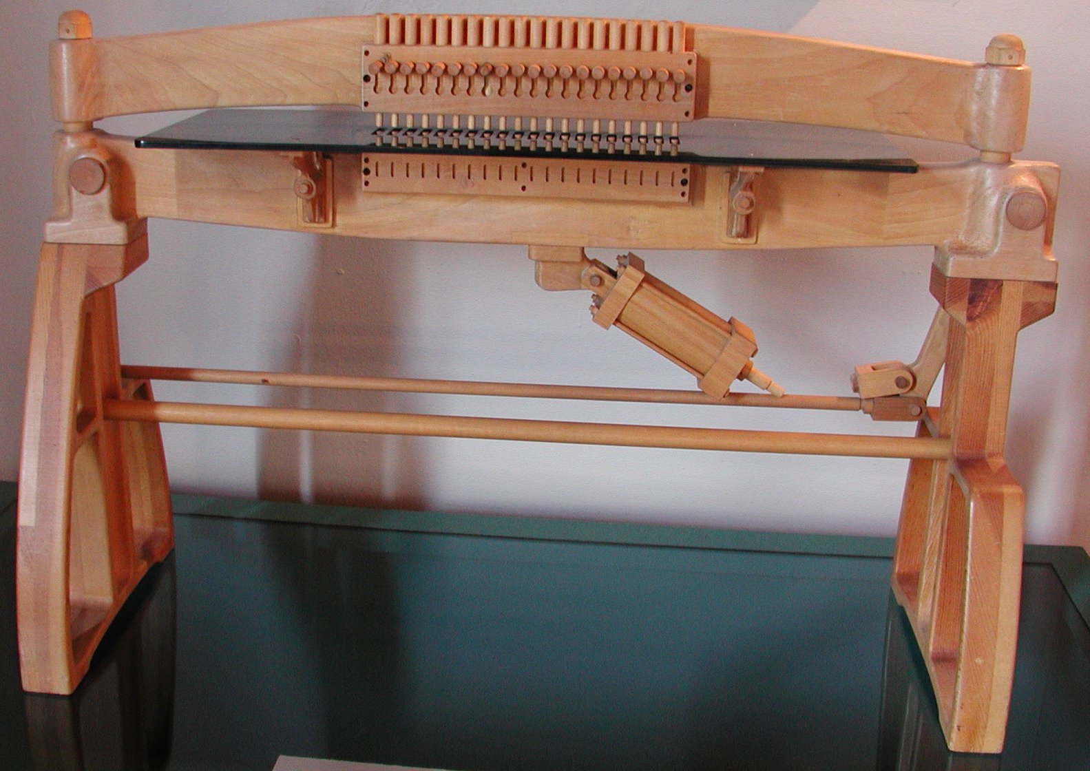 - A wooden model of the symbol press used to emboss metal printing plates with tactile symbols.