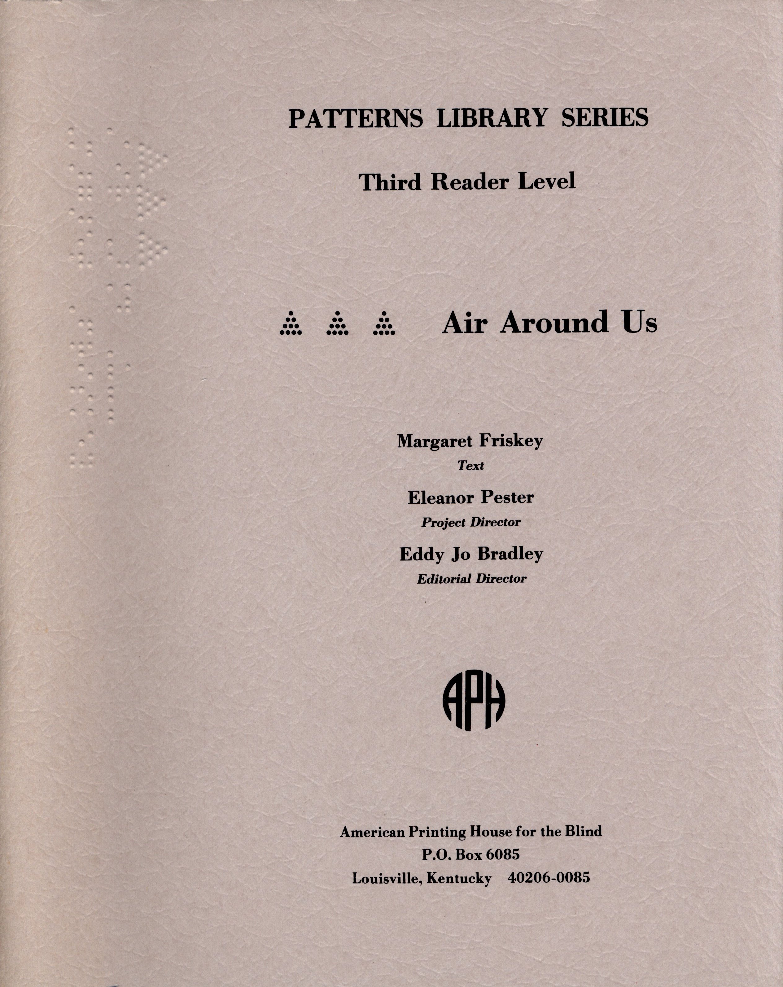 - The Third Reader Level of the Patterns Library Series was released as a new product of the American Printing House for the Blind (APH) in May 1985 and was discontinued in 2012. The Patterns Library Series was designed to supplement Patterns: The Primary Braille Reading Program, with books that corresponded in level content, color, and size to those in the reading program. Kit was transferred in 2019 to the Museum of the American Printing House for the Blind (APH) from the APH Research Department, where it had been stored with project materials of Eleanor Pester.