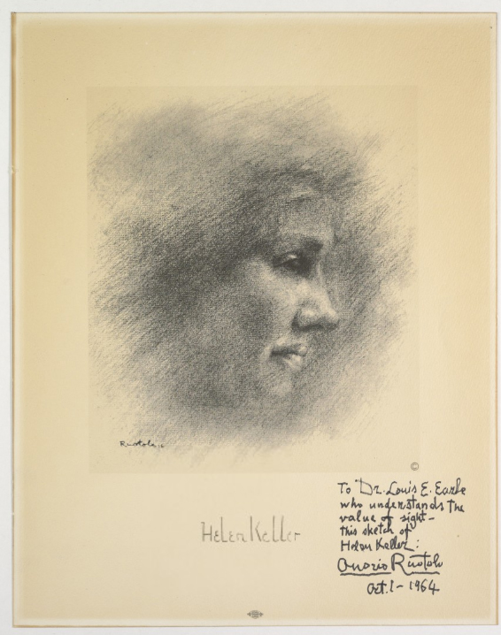 Portrait of Helen Keller by Onorio Ruotolo Print Accession Number: 2020.1.8.299Date Made: 1964Collection: AFB Helen Keller ArchiveHistory/Provenance: AFB Helen Keller ArchiveMade: Ruotolo, OnorioMaterial: PaperUpdated: 07/30/2020 Back to the collection