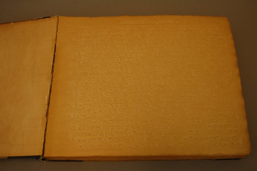 - Front of postcard shows a sepia-toned photo of a multistoried school building. There is a covered portico with a covered balcony above. Big trees obscure the view. "Nebraska School for Blind" is printed along the bottom right edge. The back of the postcard is divided and unused. "The Press Ptg Co., Nebr. City" is printed along the bottom left edge. Includes two brief sentences of information about the school at the top, left.