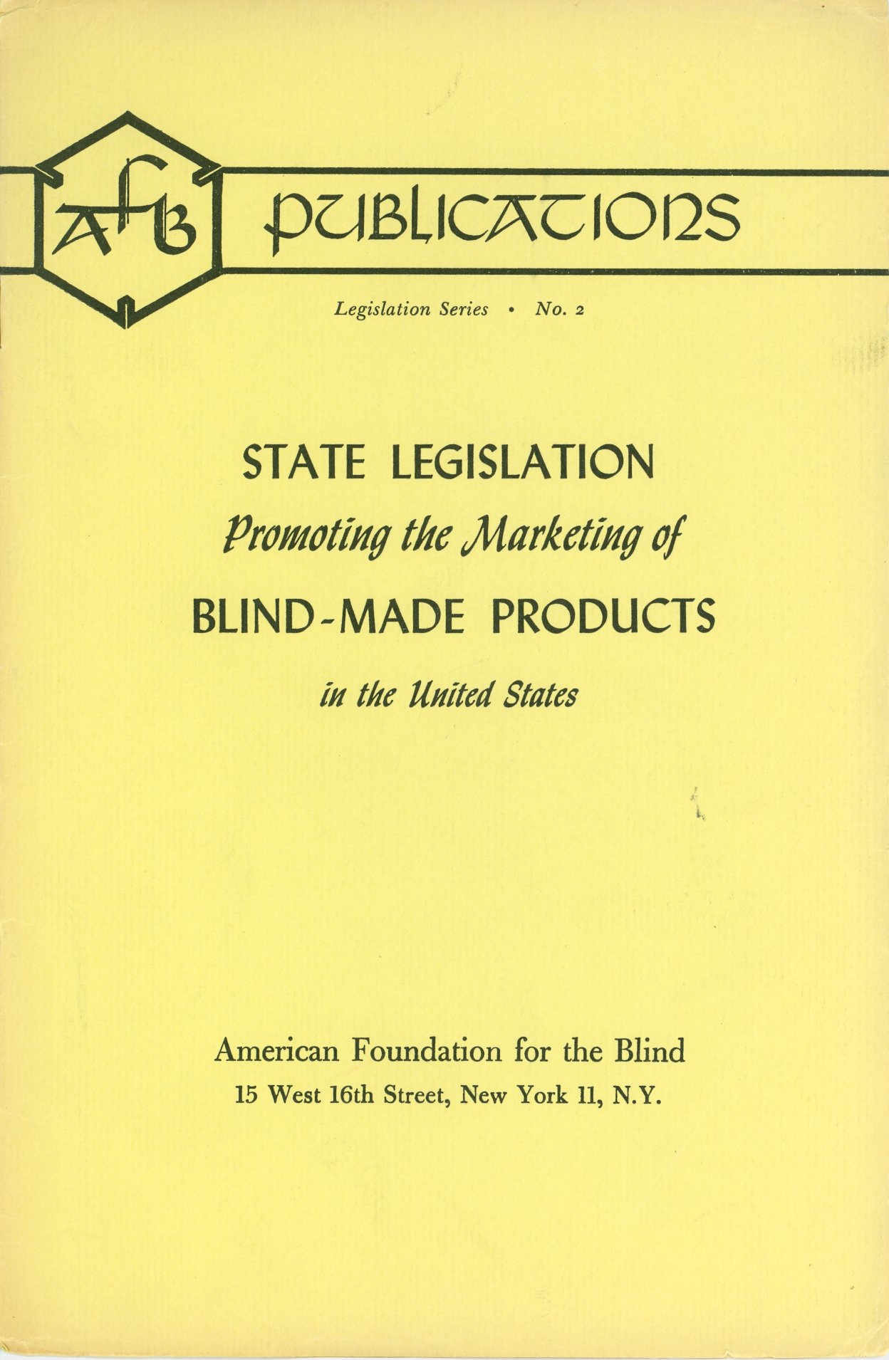 - Written as an aid in designing "state use" laws that on a state level would provide similar "opportunities for the marketing of the products of workshops for the blind" as the Wagner-O'Day Act of 1938 provided on a national level. Paperbound, yellow cover.