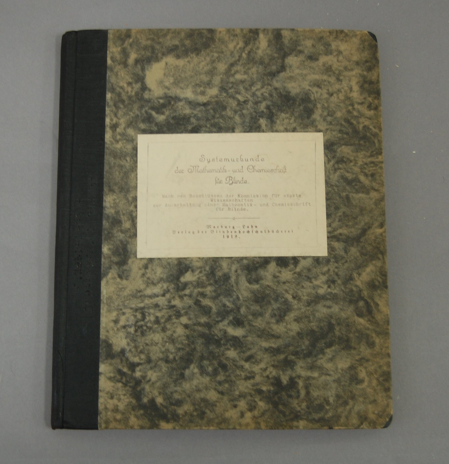 - "Nach den Beschulussen der Kommission fur exakte Wissenschaften zur Ausarbeitung einer Mathematik - und Chemieschrift fur Blinde." --cover; in typescript.
