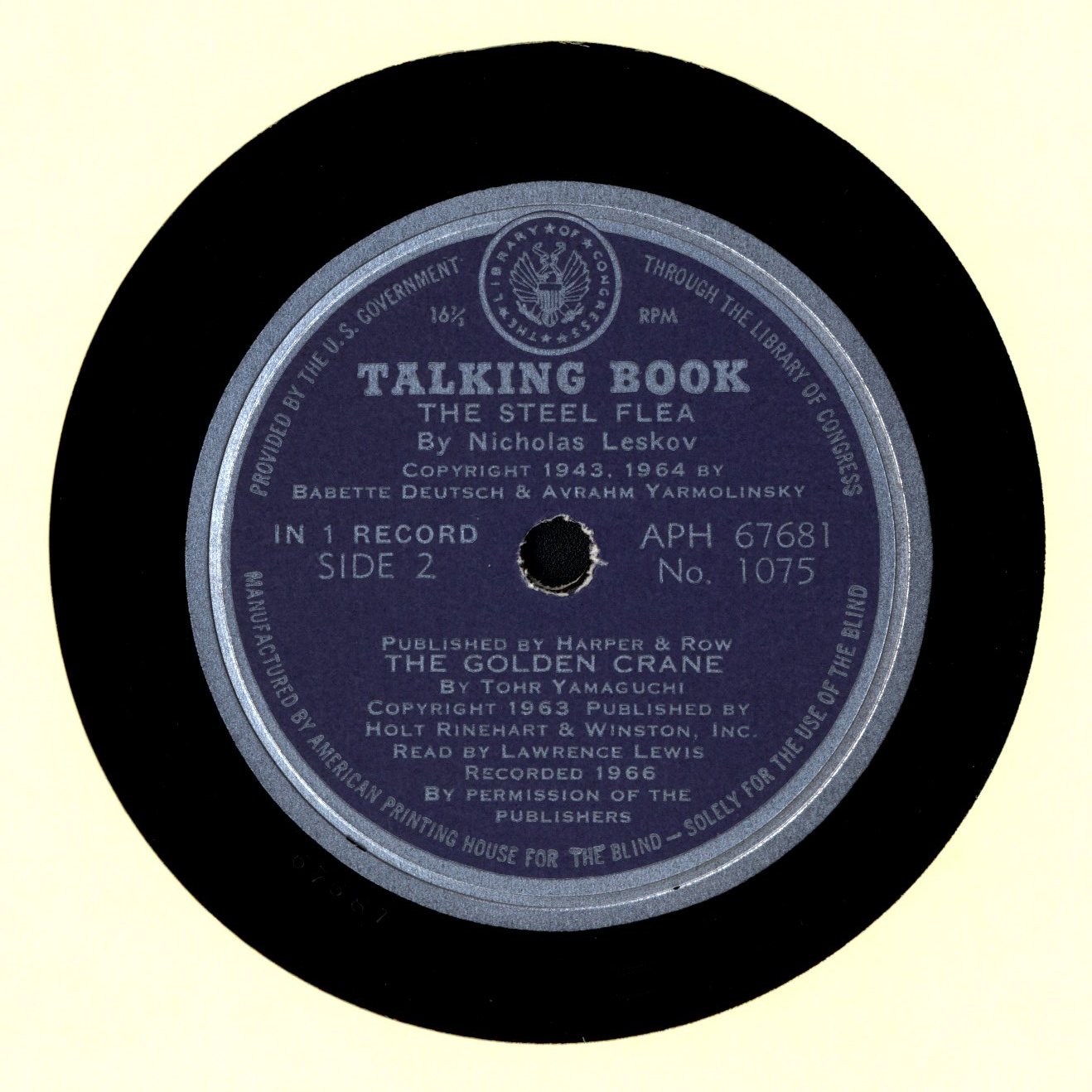 - 1 sound disc : rigid vinyl, 10 in. diameter, 16 2/3 rpm