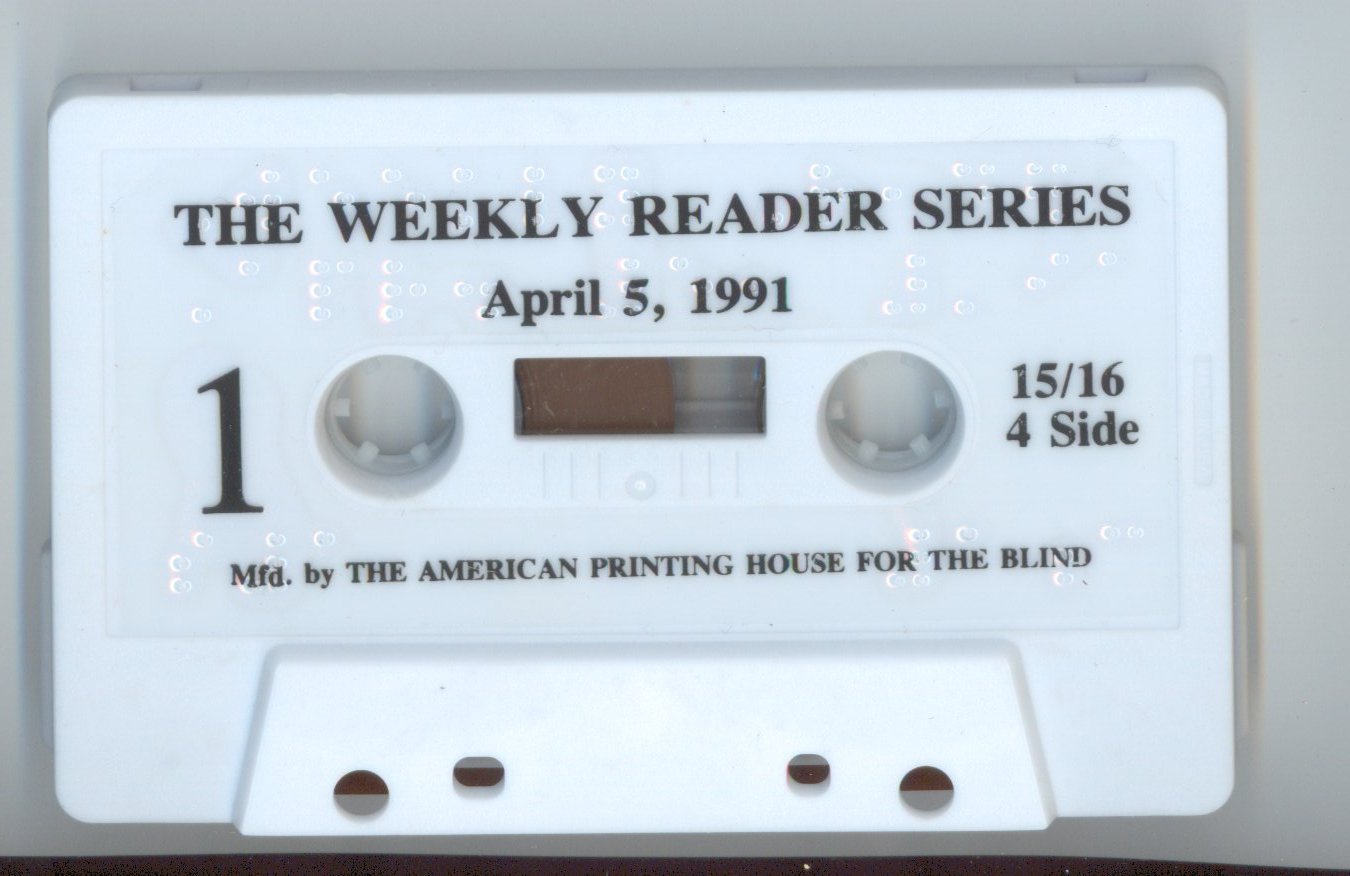- Audiocassettes are dated April 5, April 12, and April 19, 1991. Each cassette includes the most current issue at that time of the following publications: Weekly Reader, Senior Weekly, Current Events, Current Science, and Know Your World. There were no April 19 issues of these publications, so the cassette of that date has back issues. Reproduced from : Field Publications, c1991. [narrators] Cundiff, Kerry (April 5 issue); Harpeneau, Lou (April 5 and 12 issues); Huntey, Bruce (April 19 issue)